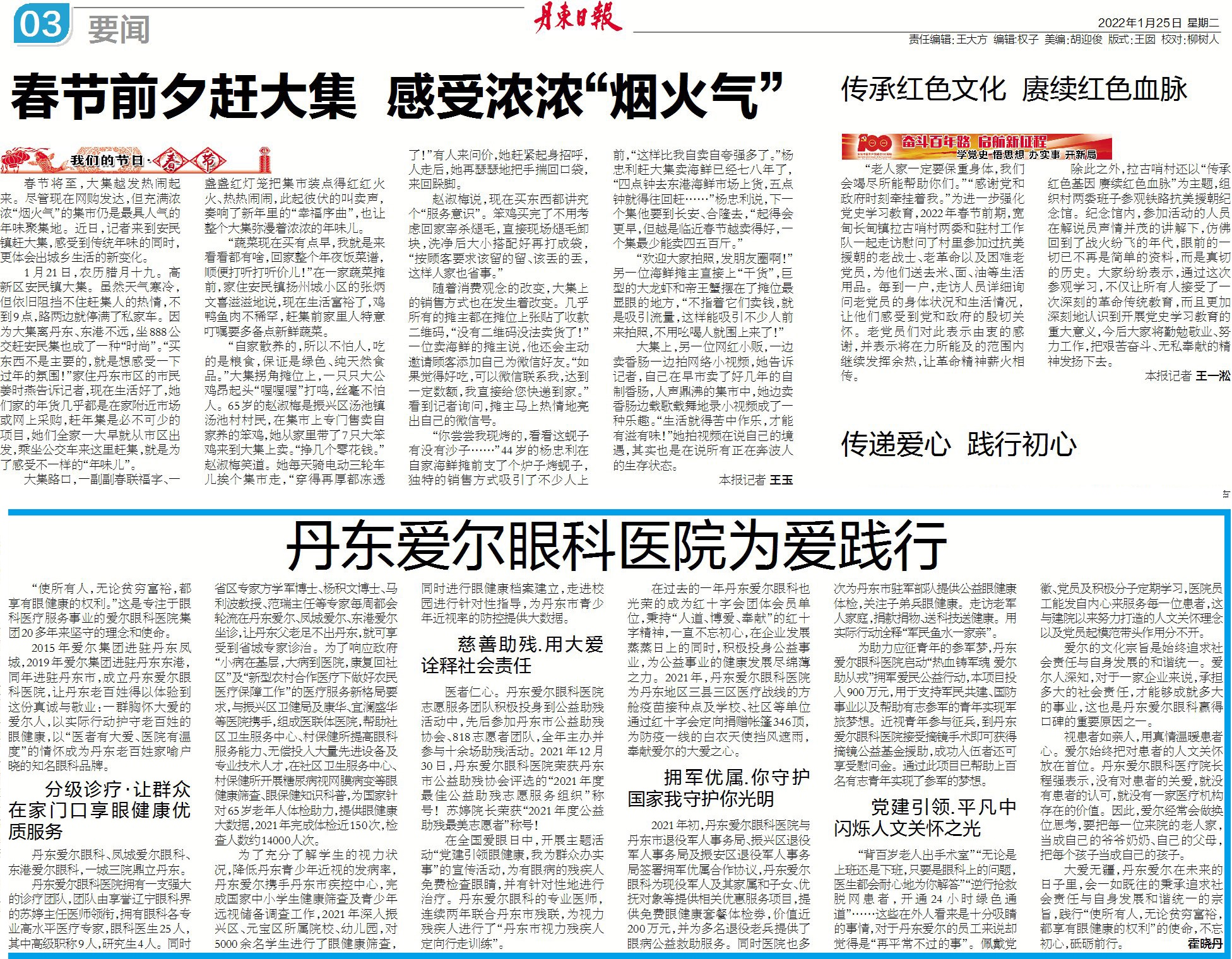 《丹东日报》要闻板发表题为《丹东爱尔眼科医院为爱践行》的主题文章,阐述了在过去的一年丹东爱尔在分级诊疗、慈善助残、拥军……